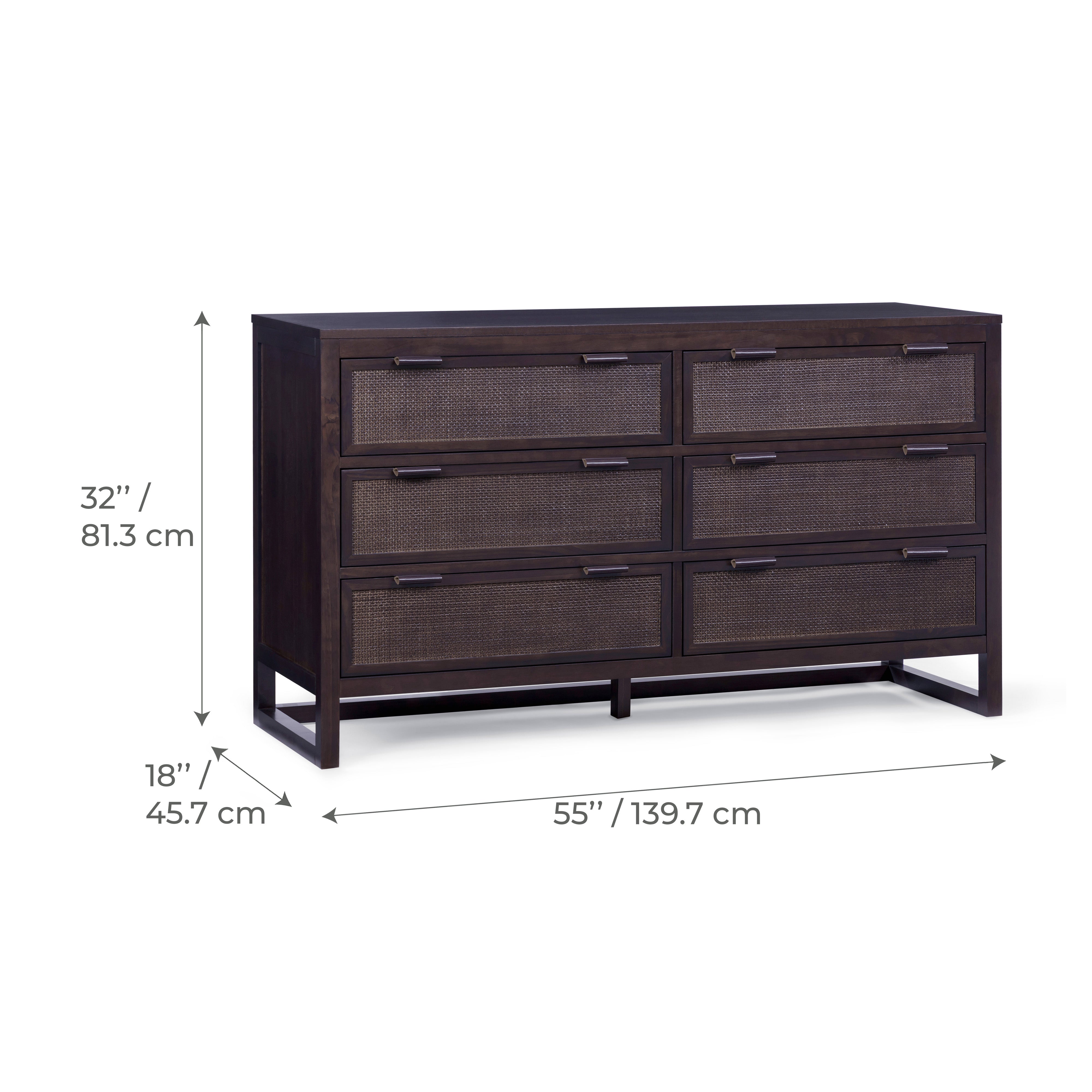 Six-Drawer Storage Layout: Wide dresser design provides ample space for clothing, linens and accessories while keeping items neatly organised.