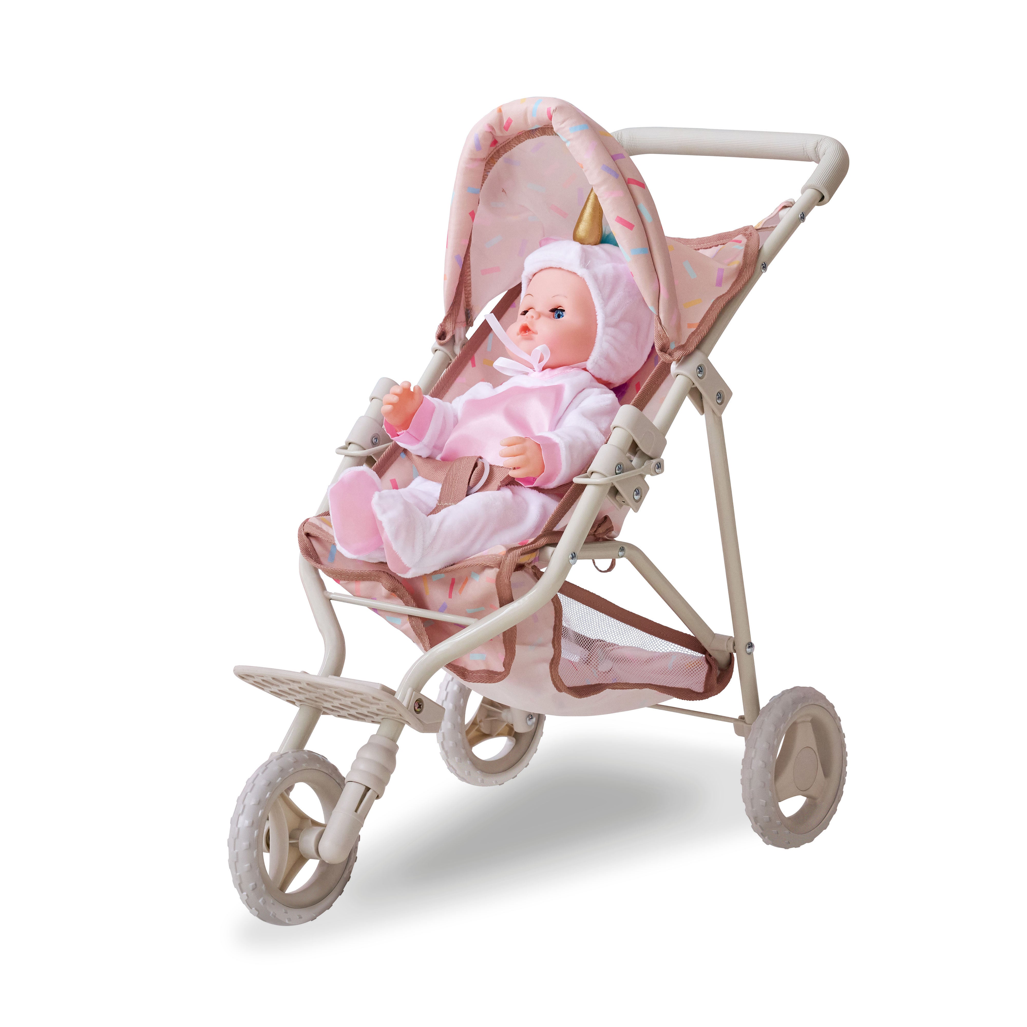 15-18 Inch Baby Doll Stroller, Beige - Confetti Doll Jogging Stoller by Olivia's Little World