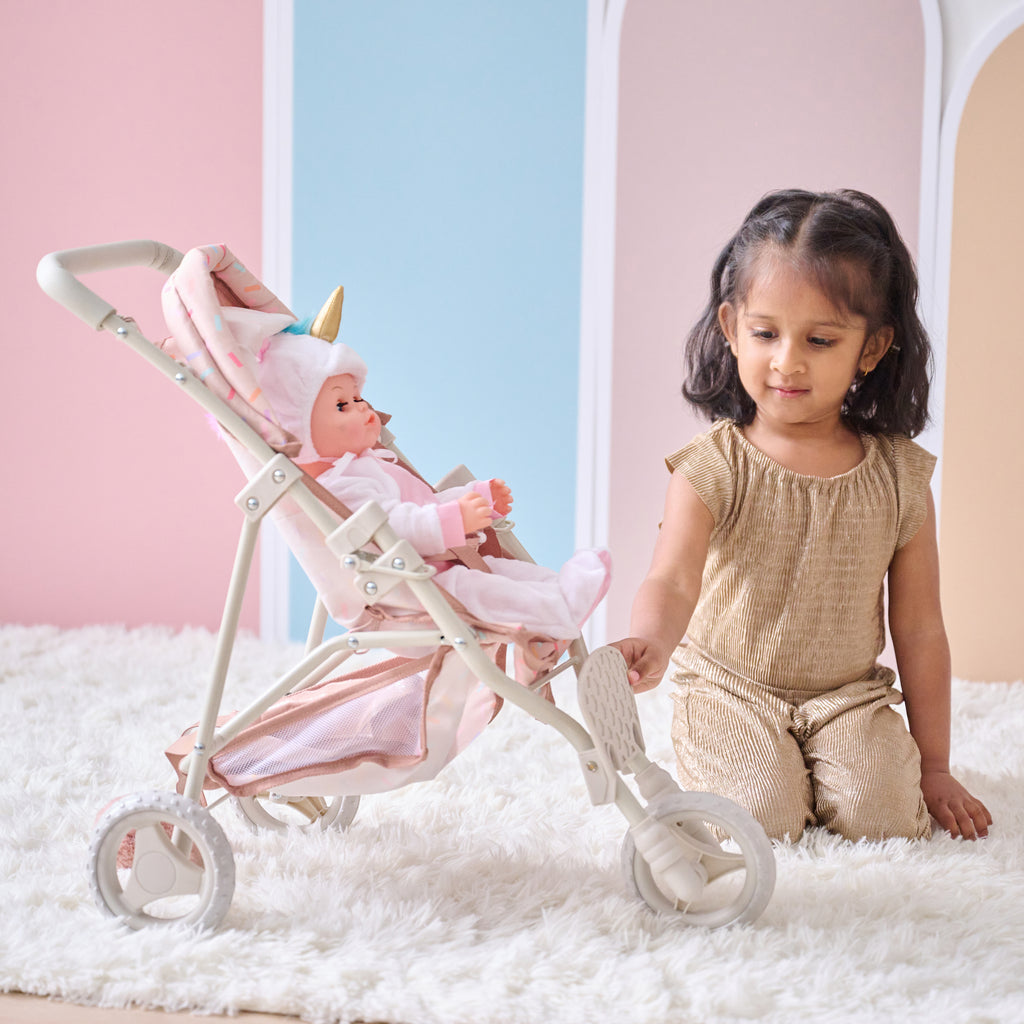 From the retractable canopy to the soft rubber handle, every detail is built to give kids a realistic and rewarding pretend parenting experience. As children fasten their baby dolls using the secure three-point safety belt, adjust the canopy for sunny days, and head out for a stroll, they’re not just playing but they’re developing empathy, responsibility, and fine motor skills in a fun, hands-on way.