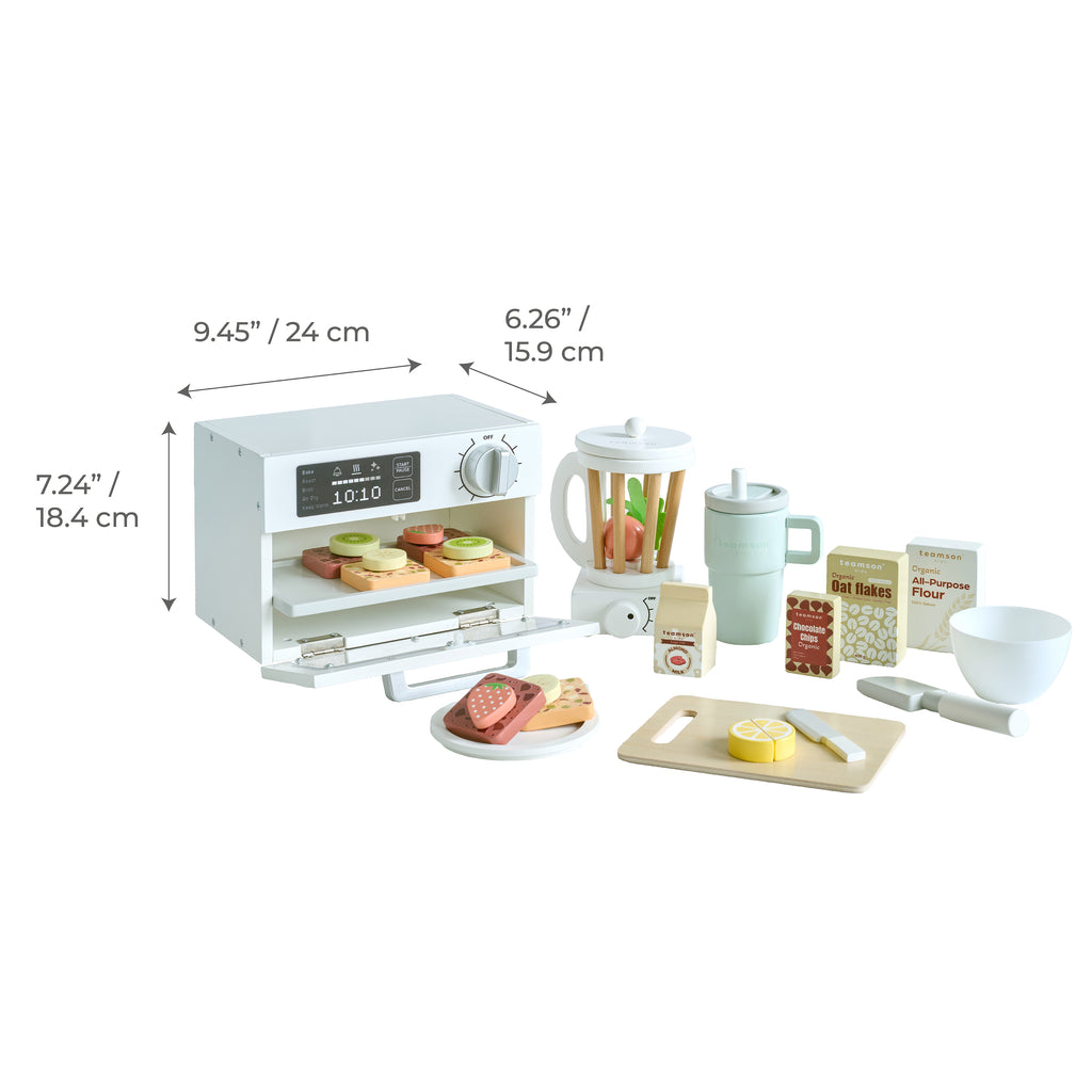 The Teamson Kids Little Chef Santa Barbara Healthy Breakfast to Go set brings real-life morning routines into playful hands. With a functional toy toaster and coffee maker as the core of the set, kids get a full breakfast station they can run on their own.